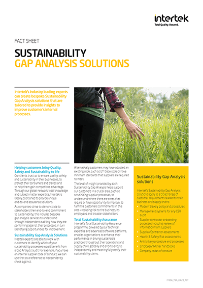 - Supply Chain Solutions and Intertek programmes, including Workplace Conditions Assessments